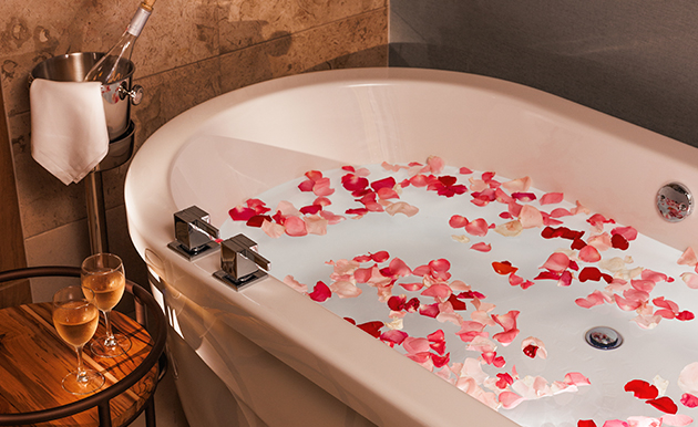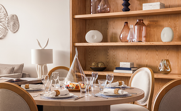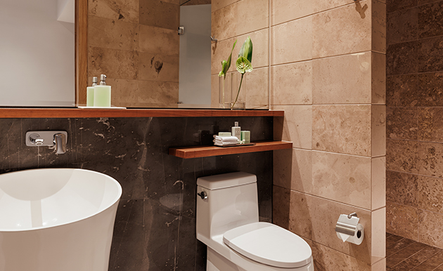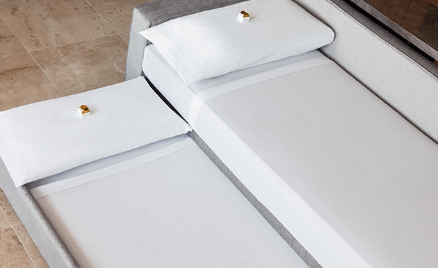 This gorgeous unit features a lower-level terrace with dining and lounging areas, an upper-level terrace with lounge chairs and views, a kitchenette with premium appliances, two TVs, a living room, and a table for four.